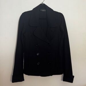 Norma Kamali Black French Terry Knit Pea Coat