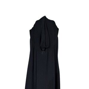 Step out in style and mystery with this Norma Kamali dress. The chic cowl turtle neck adds a dash of drama, perfect for those who want to look like they're hiding secrets or just avoiding eye contact. And in classic black, with dramatic side slitit matches everything – including your mood.