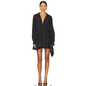 Chic black dress with long sleeves. Features a flattering belt. Ideal for versatile styling.