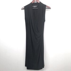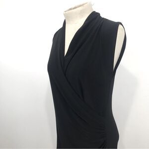 Norma Kamali Black V Neck Ruched Wrap Front Sleeveless Dress