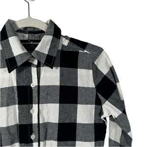 Norma Kamali Black White Buffalo Plaid Long Sleeve Button Down Shirt Womens XS