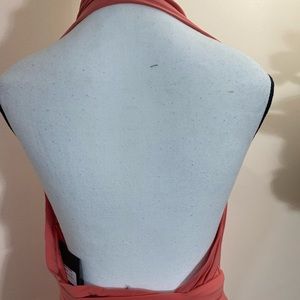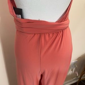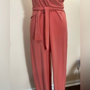 Norma Kamali Boho Halter Coral Pink Jumpsuit Playsuit Romper size Large NWT