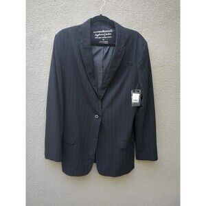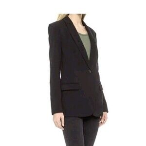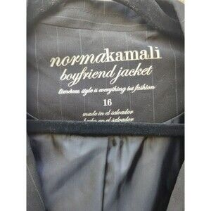 Norma Kamali Boyfriend Blazer Jacket Black Pin Stripe Single Button NWT