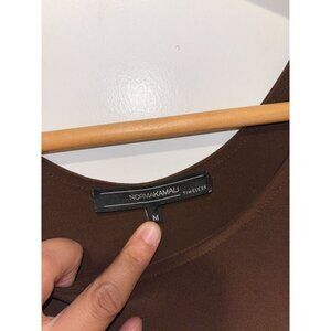 Norma Kamali Brown Sleeveless Midi Swing Dress Medium Polyester Blend Womens