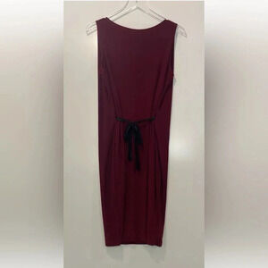 Norma Kamali Burgundy Jersey Knit Tie Waist Dress Womens Size Large (509)