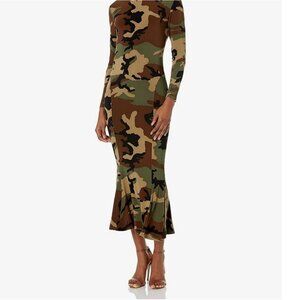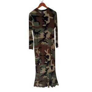 Norma Kamali Camo Crew Fishtail Dress Size Large