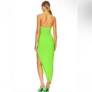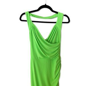 Norma Kamali Cayla Side drape gown neon green bodysuit stretch bodycon Revolve S