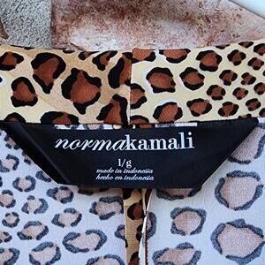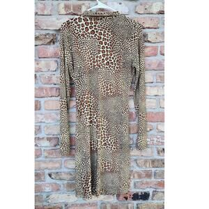 Norma Kamali Cocoa Animal Surplice Faux Wrap Stretch Jersey Dress - it's a size Large and in good pre-owned condition. I have a red one I'll be listing next, same size/style but different print, if you're interested. Bundle for a better offer. 😉