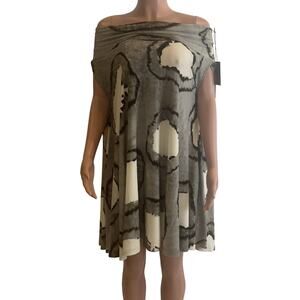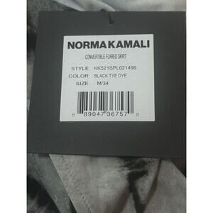 Norma Kamali Convertible Flared Skirt Swing Dress Size M Black Tie Dye Off Shoulder