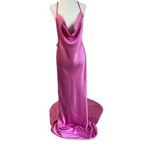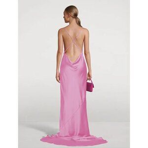 Norma Kamali Cross Back Bias Gown in Candy Pink Medium New Womens Long Dress