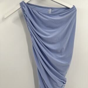 Norma Kamali Diana Dress Draped Goddess One Shoulder Ruched Blue Gown Size Small