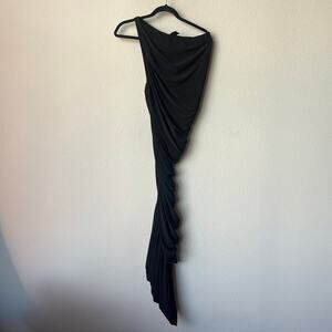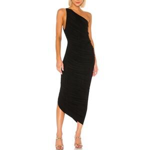 Norma Kamali 'Diana' ruched bodycon one-shoulder gown in black. Features a flattering gathered silhouette with an asymmetric hem that hugs and drapes in all the right places. Iconic and timeless. Size Medium – very stretchy. Still on the Revolve website for full price!