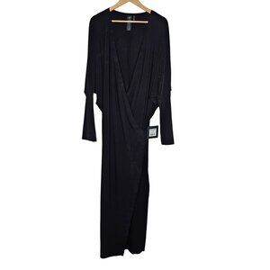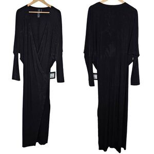 Norma Kamali Dolman Wrap Gown Side Slit Surplice V-Neck Black Women's M/38 NWT