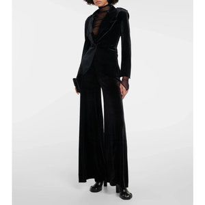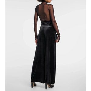 Norma Kamali Elephant Wide-Leg Flare Pull-On Velvet Pants Casual Y2K Black sz S
