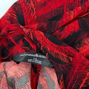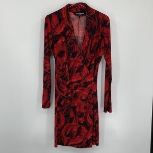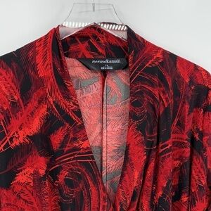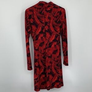 Norma Kamali Faux Wrap jersey faux knit wrap dress feather red black shift Large