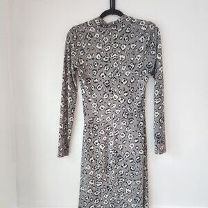 Norma Kamali Grey Leopard Print Faux Wrap Dress Cocktail Career Women's S