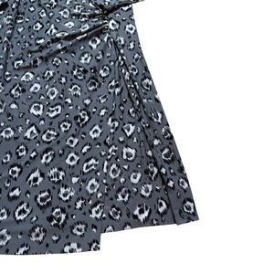 In great condition •Norma Kamali •Grey Leopard •Long Sleeve •Surplice Neckline •Mini Dress •Stretchy Material •Waist Ruching