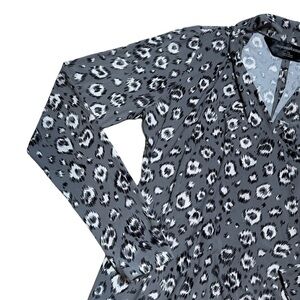 Norma Kamali Grey Leopard Print Long Sleeve Mini Dress US L