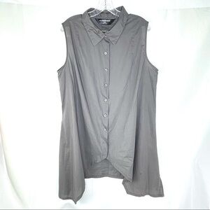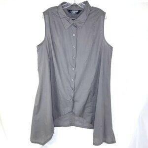 Norma Kamali Grey Sleeveless Collared Blouse XXL
