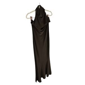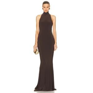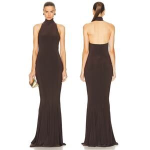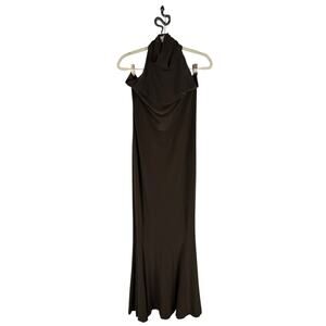 Norma Kamali Halter Turtleneck Fishtail Gown Maxi Formal Elegant Chocolate Sz L