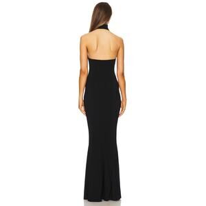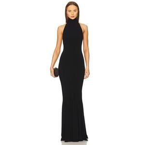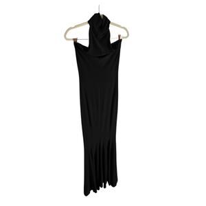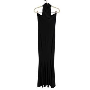 Norma Kamali Halter Turtleneck Fishtail Gown Maxi Formal Elegant Party Black XS