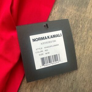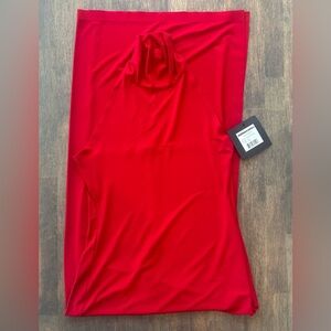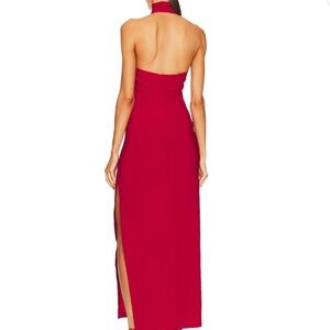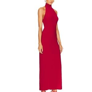 Norma Kamali Halter Turtleneck Side Slit Gown Red