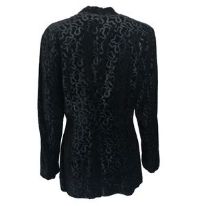 Norma Kamali Jacket Black Velvet Burnout Squiggles Tuxedo Collar Vintage 1980s