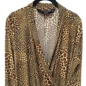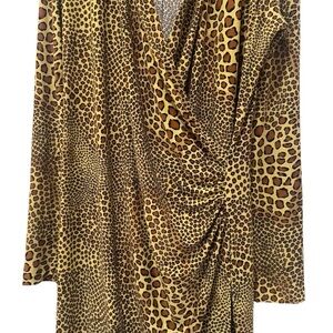 Norma Kamali Leopard Animal Print Side Ruched Midi Dress Jersey Comfort XXL