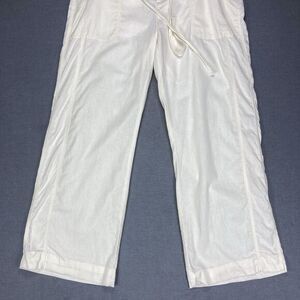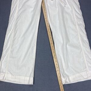 - Description: Norma Kamali Linen Pants Womens XL Ivory Straight Leg Breathable Casual Comfort