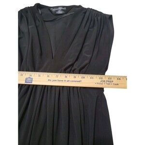 The dress is machine washable for easy care and is made from a blend of polyester and spandex, providing both durability and a gentle stretch. Its solid black color and timeless design make it a classic piece that can be dressed up or down for any occasion. Like new condition!
