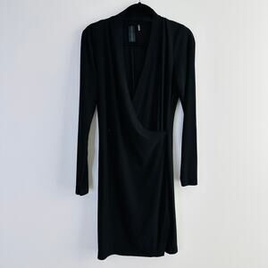 Norma Kamali Long Sleeve Side Draped Faux Wrap Dress in black Size Large
