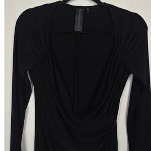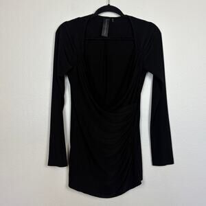 Norma Kamali Long Sleeve Sweetheart Faux Wrap Deep V Neck Blouse Medium