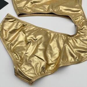 Norma Kamali | NWT Shane Metallic Gold Foil One Piece Bathing Suit Bodysuit S