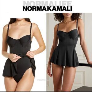 Norma Kamali's swimsuit calls to mind playful, retro styles. It's made from smooth stretch fabric and has underwired cups and a seamed bodice that gives way to a gently pleated skirt.
