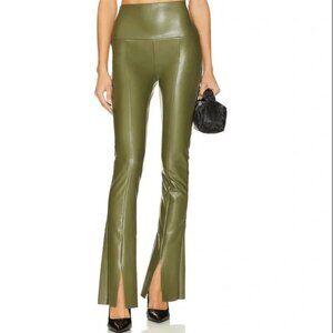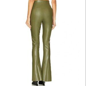 Norma Kamali Pant Legging (SMALL) High Rise Flared Leather Stretch Spat Olive Spat