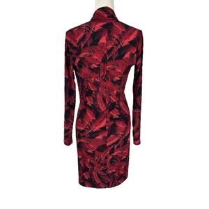 Norma Kamali Red Black Jersey Faux Wrap Dress Long Sleeve V-Neck Size Small