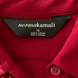 Elegant red long sleeve button down shirt from Norma Kamali. Classic collar. Perfect for any occasion.