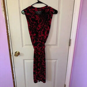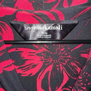 Norma Kamali Sleeveless Faux Wrap Jersey Dress Floral Print Black & Red Size M