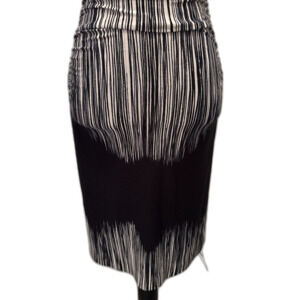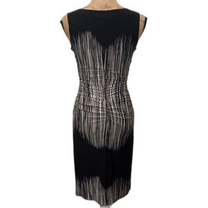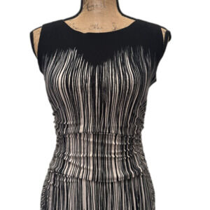 Norma Kamali Sleeveless Shirred Waist Dress in Fringe Print Black Chic Size Small