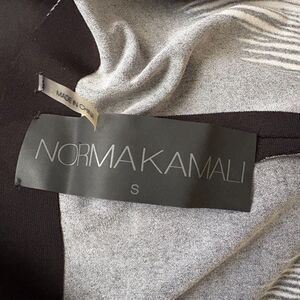 Norma Kamali Sleeveless Shirred Waist Dress Fringe Print Black Chic Size Small