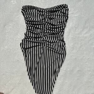 Norma Kamali Slinky Marissa Ivy Black White Stripe One Piece Swimsuit Small NWOT