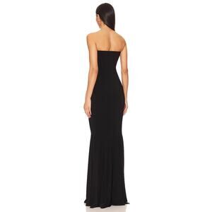 The Norma Kamali Strapless Shirred Front Fishtail Gown in black delivers timeless elegance with its figure-hugging silhouette and dramatic fishtail hem. Crafted with shirred detailing at the front, this strapless gown offers a refined yet sultry look—ideal for formal events, black-tie affairs, and captivating entrances.