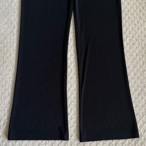 Norma Kamali Stretch Jersey Boot Pant - Black - Size XL - NWT - Flared/Office/Minimalist/High-Rise/Comfy. These stylish pants from Norma Kamali feature lightweight and wrinkle-free fabric with 4-way stretch, wide waistband, high-rise, boot-cut silhouette, and easy pull-on styling. These pants are very versatile and perfect for any occasion, day or night. They run large, so please see measurements in photos. Excellent condition - NWT!