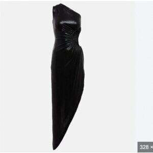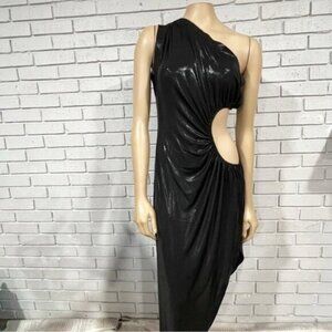 Norma Kamali Sunburst One‑Shoulder Cut‑Out Gown – Size XL – Black Lamé / Evening