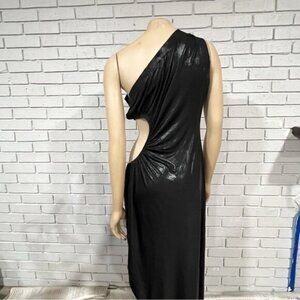 Norma Kamali Sunburst One‑Shoulder Cut‑Out Gown – Size XL – Black Lamé / Evening