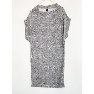 Norma Kamali Sz XS All In One Sleeveless Scratch Print White Black Dress.