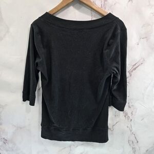 Norma Kamali T Shirt Womens Large Black Red V Tee Heart Rose Basic Organic