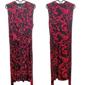 Norma Kamali Tie Waist Jersey Dress Hibiscus Floral L