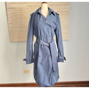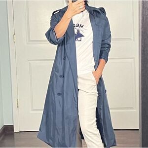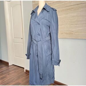 Norma Kamali Trench Coat Rain Coat Size Small Slate Blue Travel