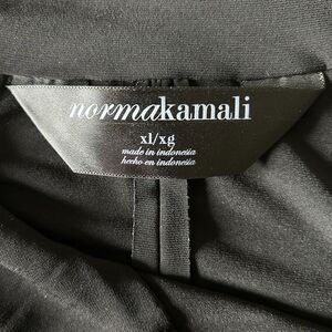 Norma Kamali women's size XL classic minimalist turtleneck top. Black stretch knit mock neck with neck zipper and long sleeves. 94% Polyester, 6% Spandex; Machine Wash. Excellent condition.